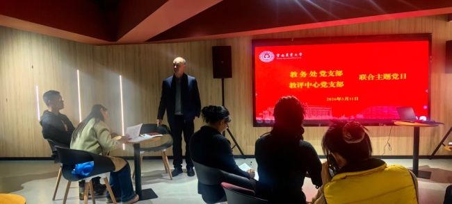 3月11日,教务处党支部与教学质量监控与评估中心党支部在逸夫楼A区学生活动中心联合开展主题党日活动。活动围绕“强化责任担当、深化党建业务融合”主题,设置理论学习、专题党课、精神传达和业务研讨等环节。赵正雄副校长出席活动并作讲话,教务处党支部书记鲁绍雄主持活动。